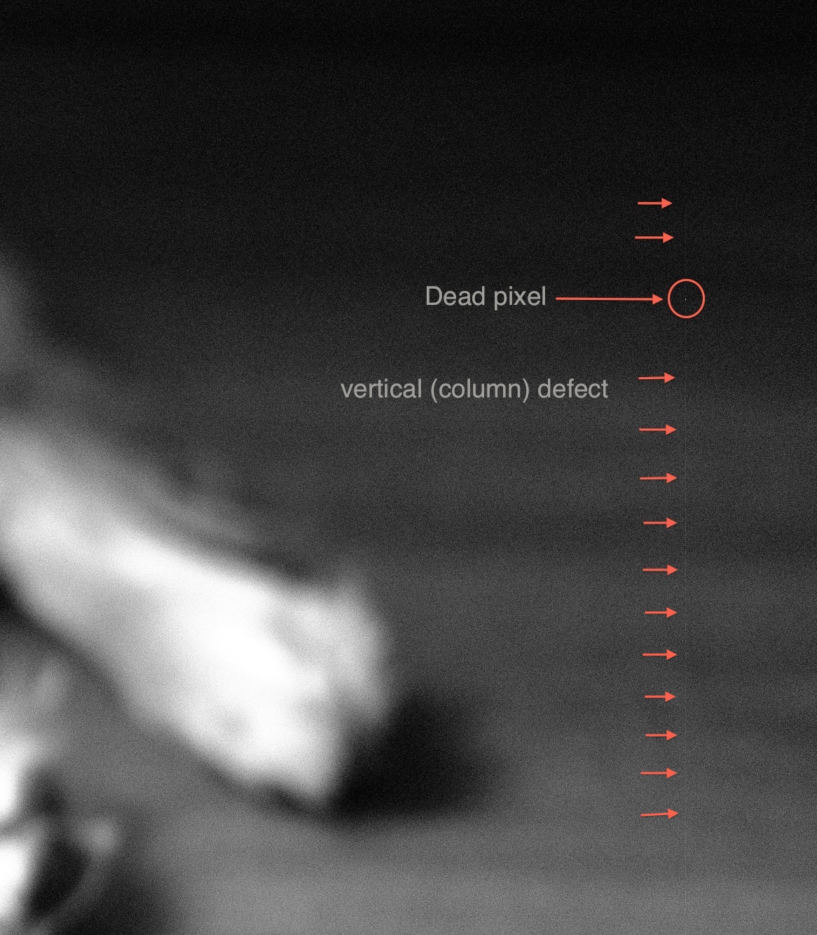 The fourth had again bad pixels, a feint pixel column failure, and signs of a remapped pixel column.