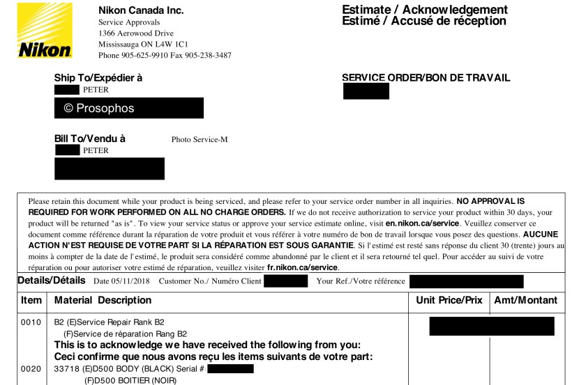 After one year of flawless performance, my Nikon D500 is in need of repair…
