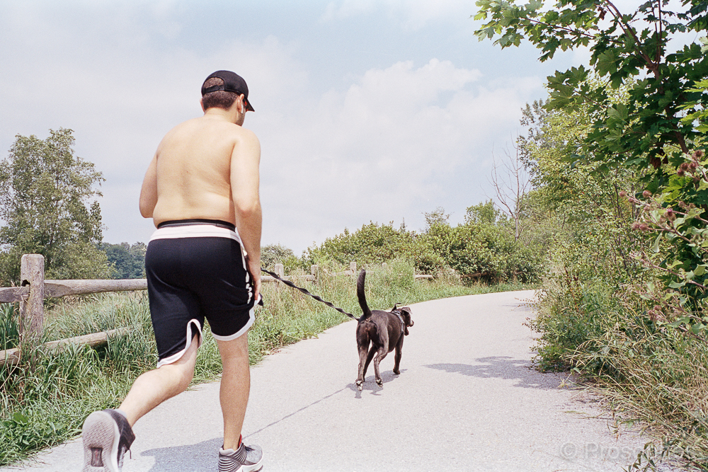 Man and Dog. 2021, Beyond 200 feet of My House™, Favourite, Film, Inspiration, Kodak Portra 400, Leica M2, Leica M2-R, Portrait, Scanner - Plustek 8200i, Sports, Street, Voigtländer 35mm f/2 Ultron Vintage Line Aspherical II ↑ Leica M2-R, Voigtländer Ultron Vintage Line 35mm f/2 Aspherical II, Kodak Portra 400, and Plustek 8200i. Related