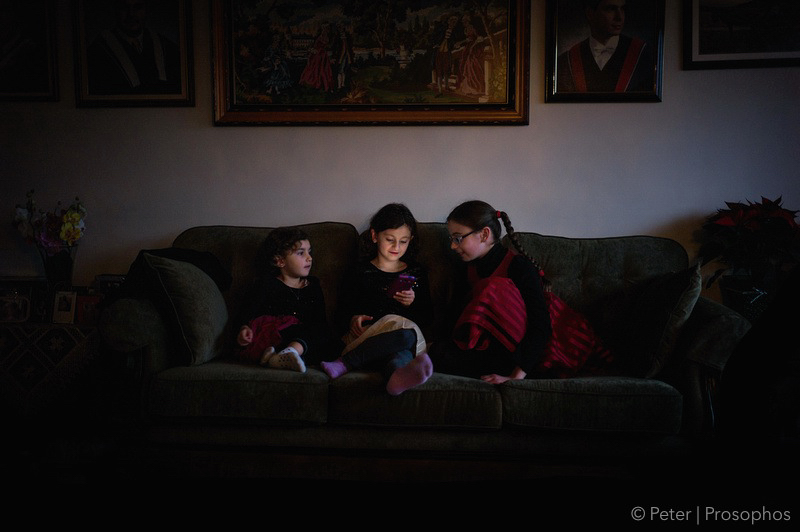 The sun was quickly setting as this scene was unfolding and the the vestigial rays of light coming in through the window were creating a pink, gold, and red speckled glow on the wall behind our trio of Santa trackers. The glow of the smartphone screen also helped set the mood.